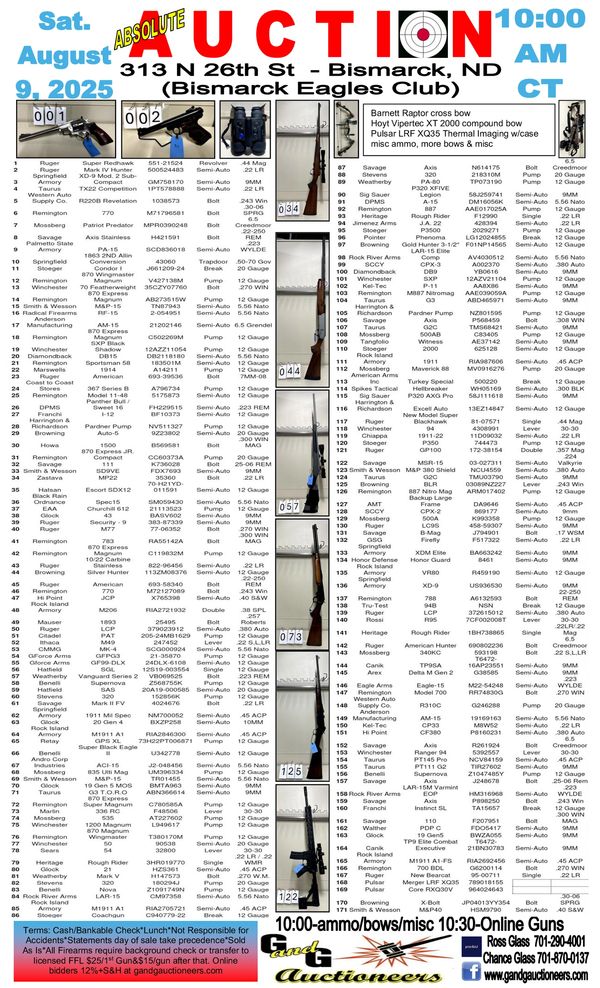 **7+ BONUS GUNS to be sold for those that are at auction in person**