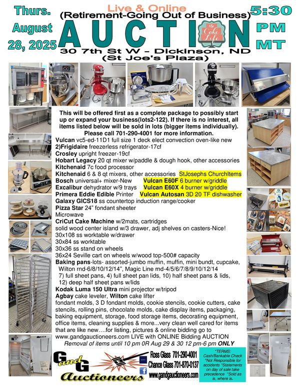 Bakery/Pastry Retiring / Going Out of business AUCTION - 3 Items just added from St Josephs Church
